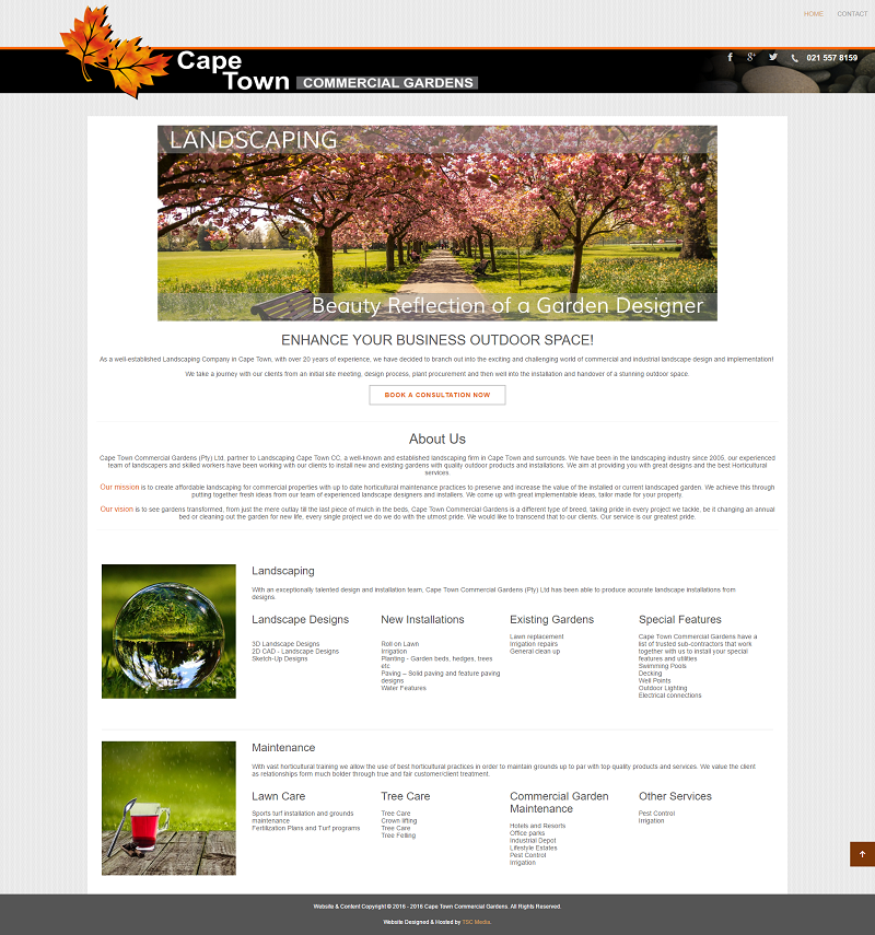 Landscaping Cape Town, who have an extensive number of years’ experience, expanded into the commercial market with Cape Town Commercial Gardens. We put together a Joomla one-pager, with a slider, for them with a view of expanding at a later stage. We also setup their social media accounts. Matthew also hosted with us at the time.