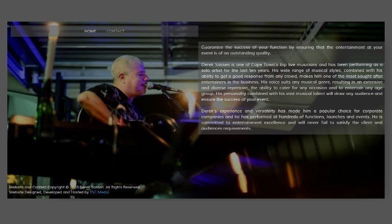 In 2008, we designed a website for Derek Sassen. It was an HTML site with flash animation on the menu and splash page. It was then converted to a Joomla site in 2010.