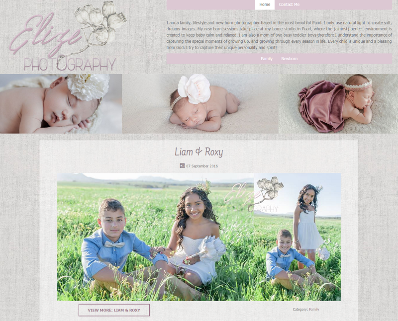 Elize was a referral client and we had such joy putting her photography blog site together. Elize's website is a Joomla based site with a front end CMS ability.