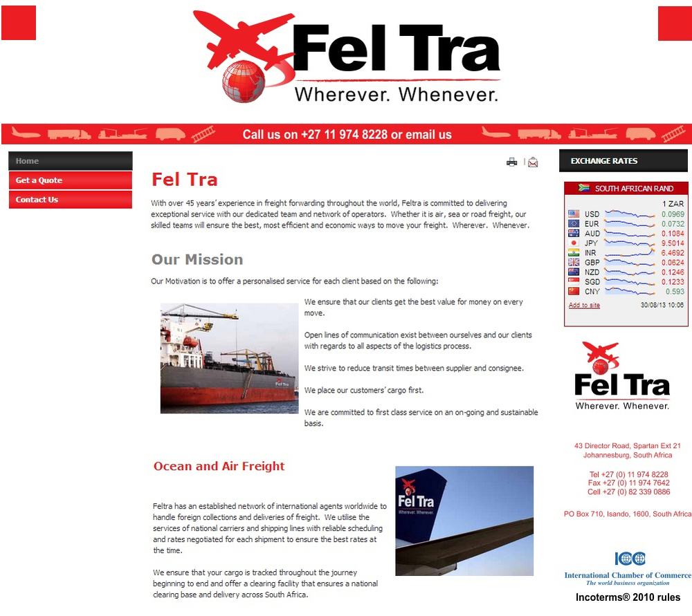 A website mock-up for FelTra Transit was design and presented to us by a 3rd party designer. The design was converted to Joomla template and the website developed with submission form and commodities ticker. FelTra was developed and hosted by TSC Media.