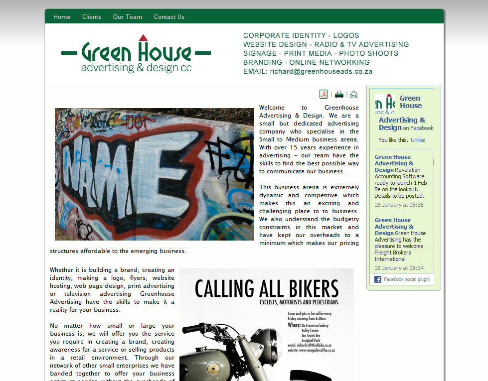 In 2012, Green House Advertising and, thereafter, Brand Elevation presented us with their website mockups in Photoshop format. We created a Joomla template from the mockup and developed a Joomla CMS website with Facebook feed for them. Richard transformed his business to Frank Designs. We are proud to have partnered with his company on many projects.