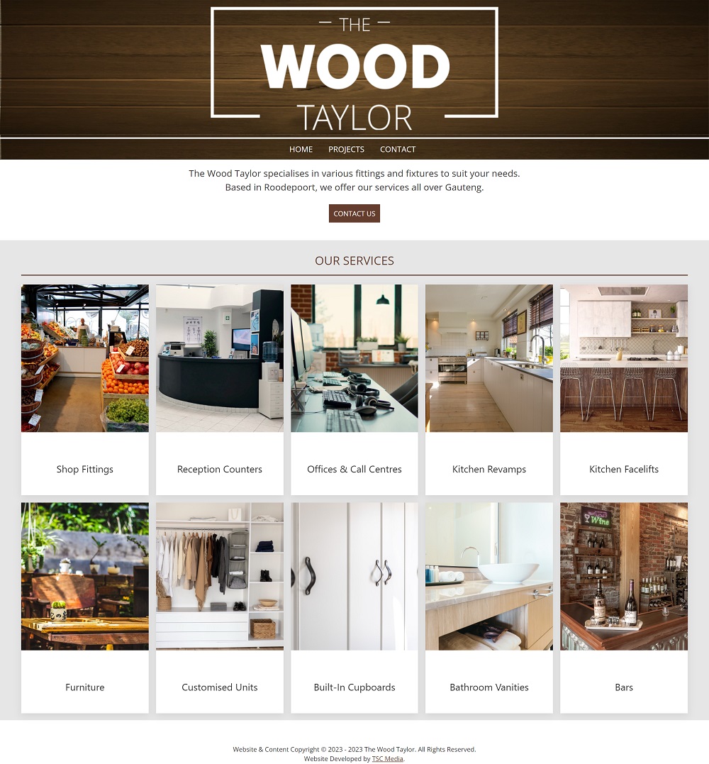 The Wood Taylor was a brand new company. We created their domain to enable hosting and email while we developed a logo and website. We also developed a Digital Business Card for them to send out via instant messaging platforms. Once the brand was final, we also developed a basic online billing system. The Wood Taylor was Hosted with us as well as on a Maintenance SLA for the website.